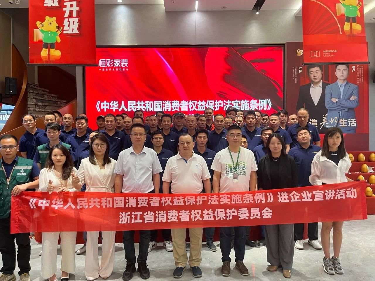 6月4日上午,浙江省消費者權益保護委員會聯(lián)合浙江省建筑裝飾行業(yè)協(xié)會走進恒彩集團總部,共同舉辦“普消法鑄誠信,普知識助消費”普法進企業(yè)巡講活動,向企業(yè)發(fā)放《中華人民共和國消費者權益保護法實施條例》宣傳冊,并進行現(xiàn)場普法與規(guī)范宣講。恒彩董事長李青帶領工程技術人員、法務人員及集團管理層認真聽、虛心學。