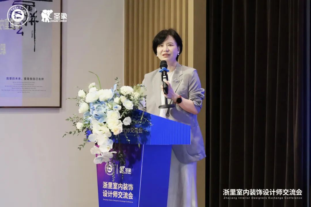 浙江省建筑裝飾行業(yè)協(xié)會賈華琴會長出席會議并致辭。她希望年輕設(shè)計(jì)師們堅(jiān)守設(shè)計(jì)初心,深耕裝飾專業(yè),勇于開拓創(chuàng)新,提升設(shè)計(jì)綜合能力,深入探索與實(shí)踐建筑裝飾設(shè)計(jì)可持續(xù)發(fā)展之路徑,為我省建筑裝飾行業(yè)高質(zhì)量發(fā)揮積極作用。