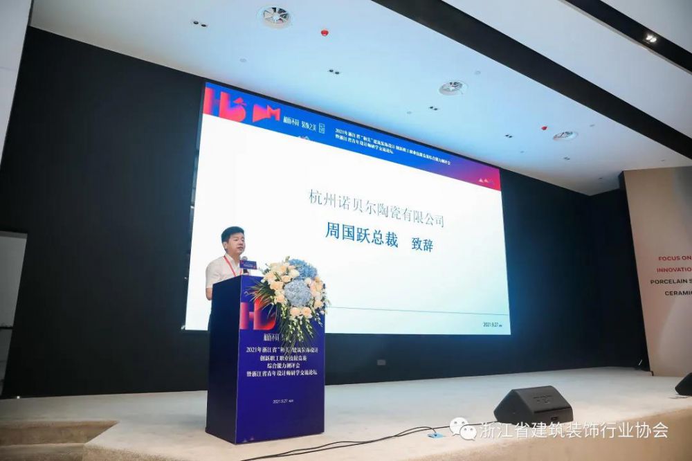 周?chē)?guó)躍總裁首先對(duì)2021年浙江省“和美”建筑裝飾設(shè)計(jì)創(chuàng)新職工職業(yè)技能競(jìng)賽綜合能力測(cè)評(píng)會(huì)暨浙江省青年設(shè)計(jì)師研學(xué)交流論壇在杭州諾貝爾陶瓷有限公司召開(kāi)表示熱烈地歡迎和感謝。周總表示諾貝爾一直以材料原創(chuàng)為發(fā)展動(dòng)力,以精益求精的創(chuàng)新技術(shù)、精耕細(xì)作的匠心精神,打造中國(guó)裝飾材料產(chǎn)業(yè)的新業(yè)態(tài),促進(jìn)中國(guó)裝飾材料與建筑裝飾產(chǎn)業(yè)融合。