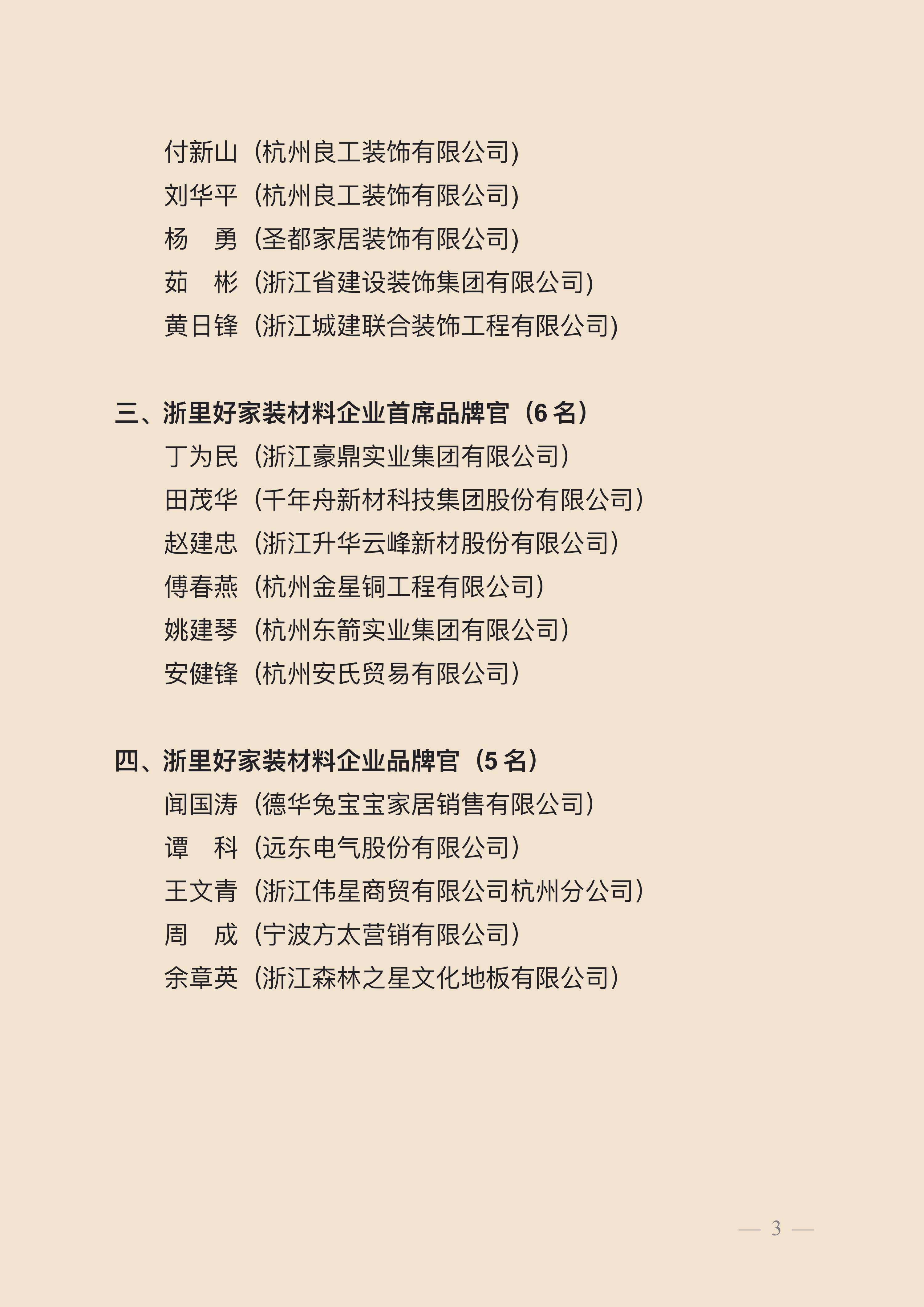 關(guān)于入選“浙里好家裝設(shè)計師”“浙里好家裝項目經(jīng)理”“浙里好家裝材料企業(yè)首席品牌官與品牌官”展示活動的名單公示