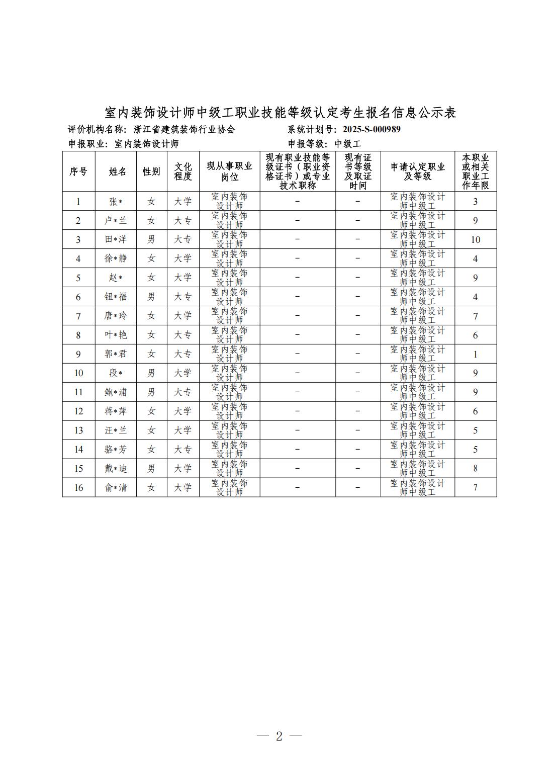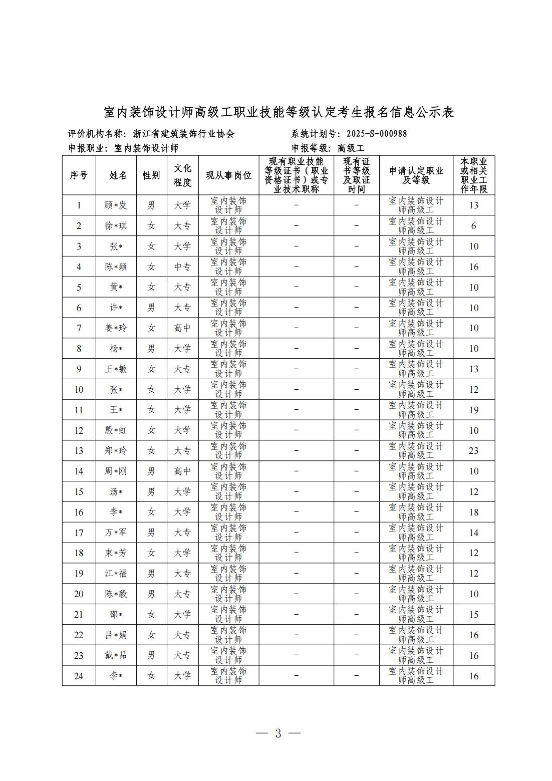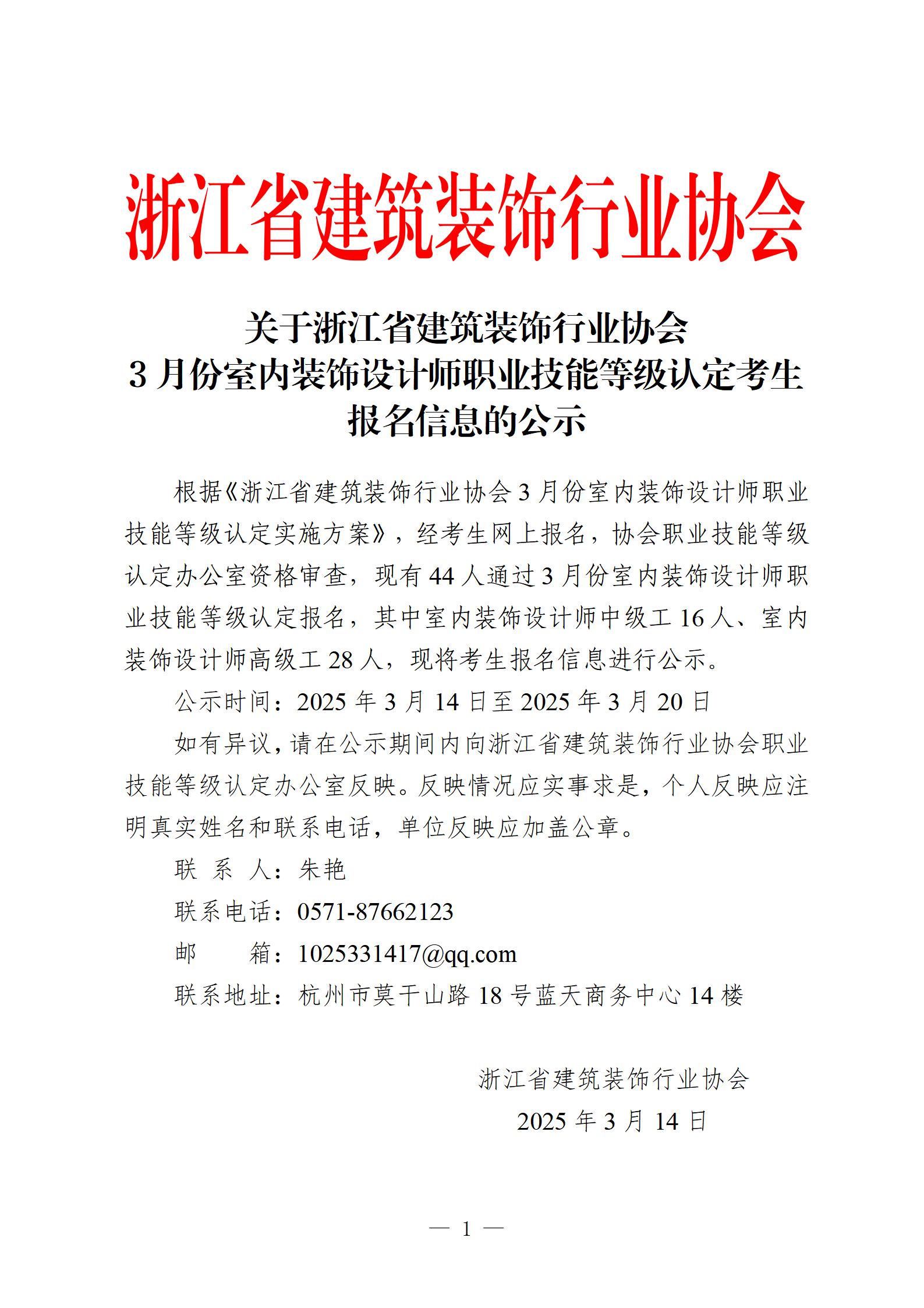 浙江省建筑裝飾行業(yè)協(xié)會3月份室內(nèi)裝飾設(shè)計(jì)師職業(yè)技能等級認(rèn)定考生報名信息公示