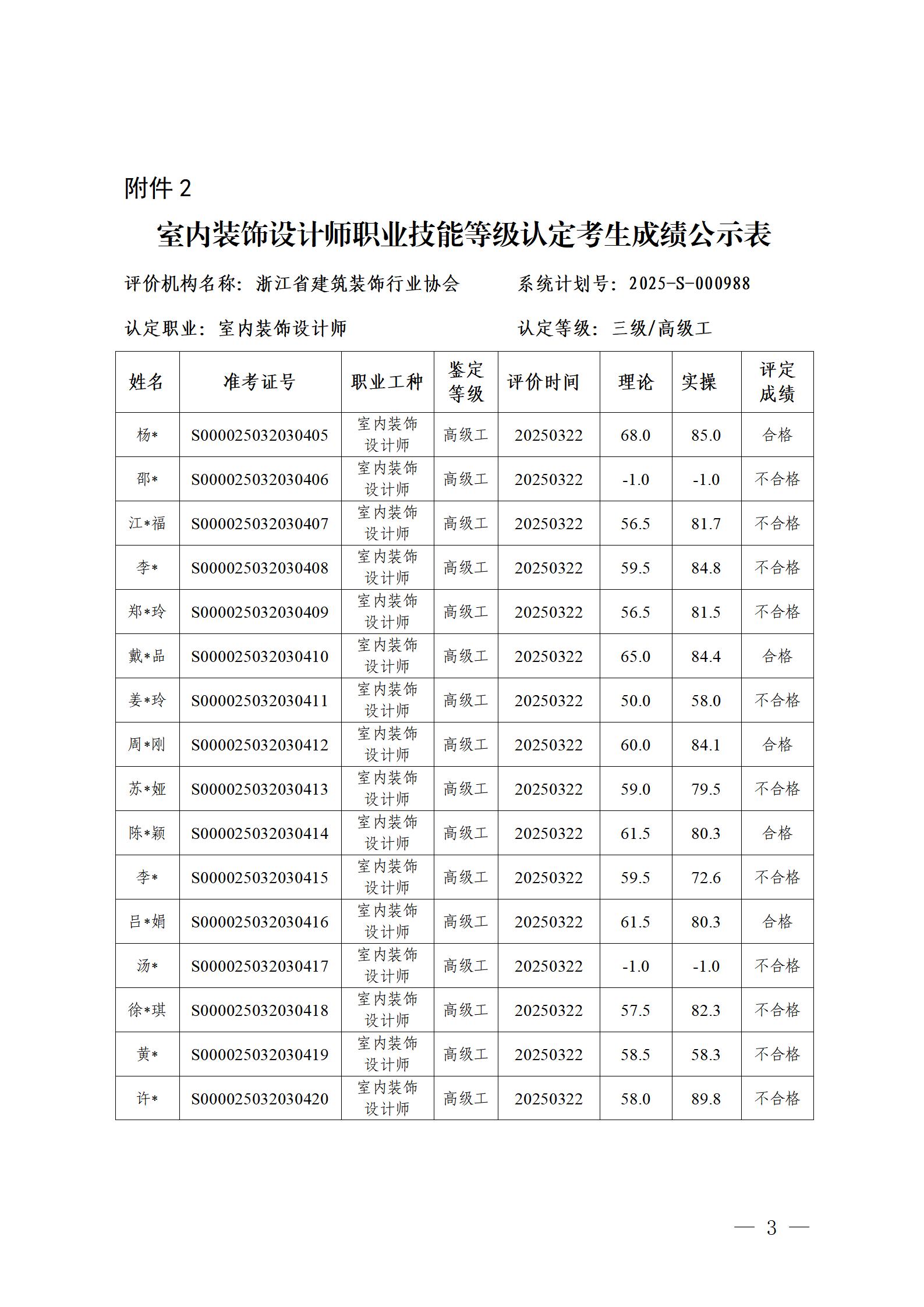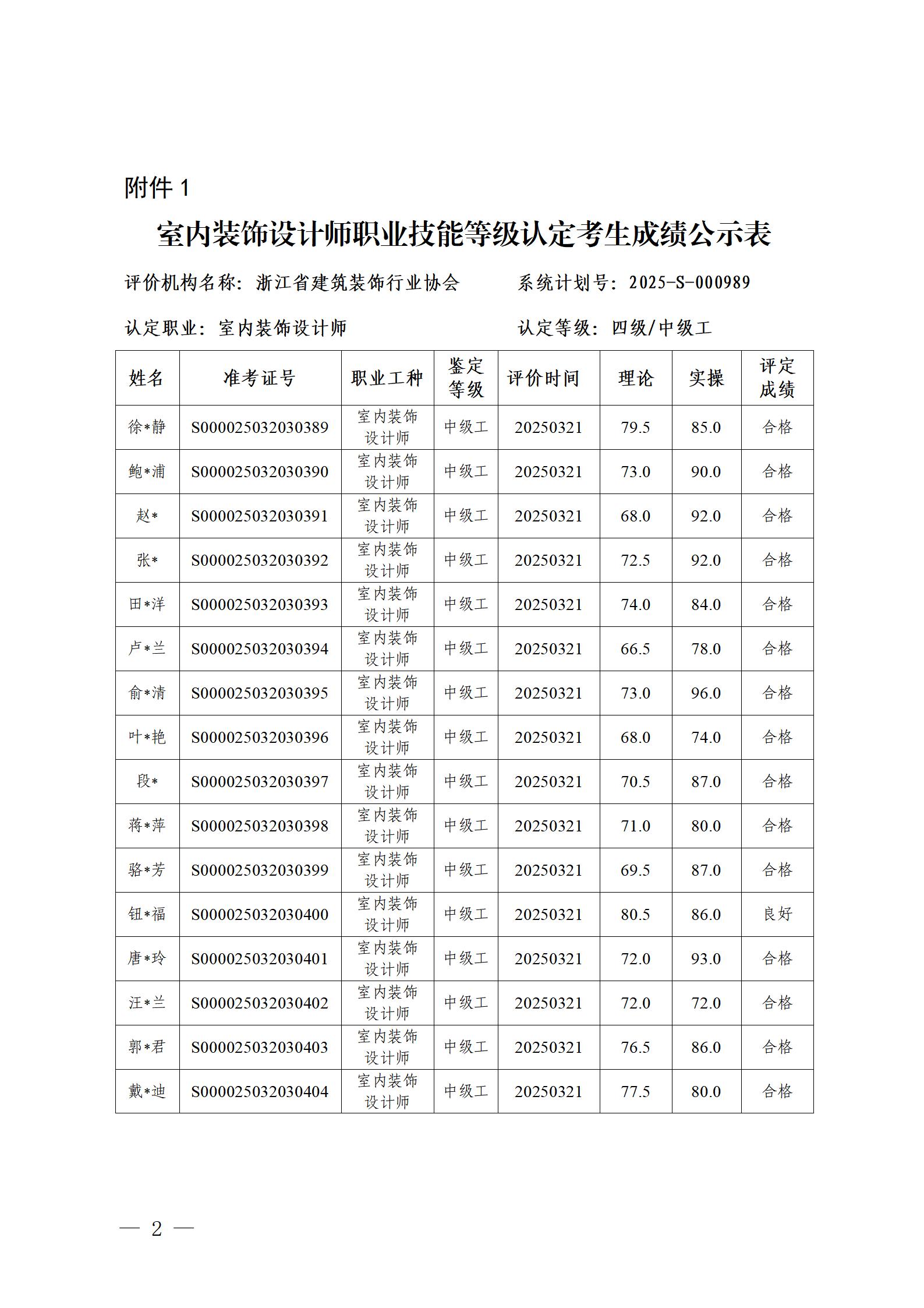 關于浙江省建筑裝飾行業(yè)協會3月份室內裝飾設計師職業(yè)技能等級認定考生成績的公示