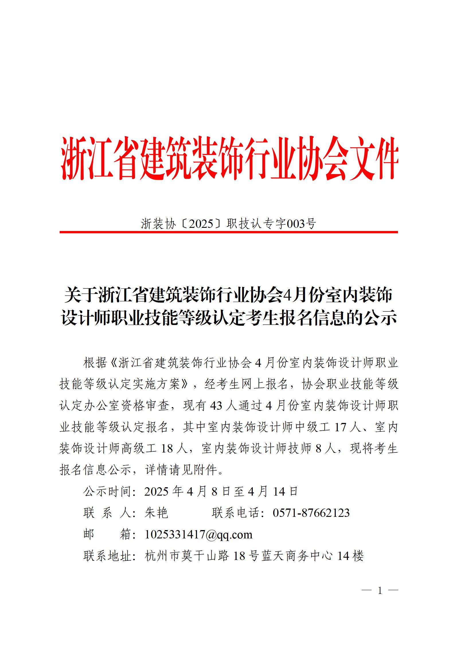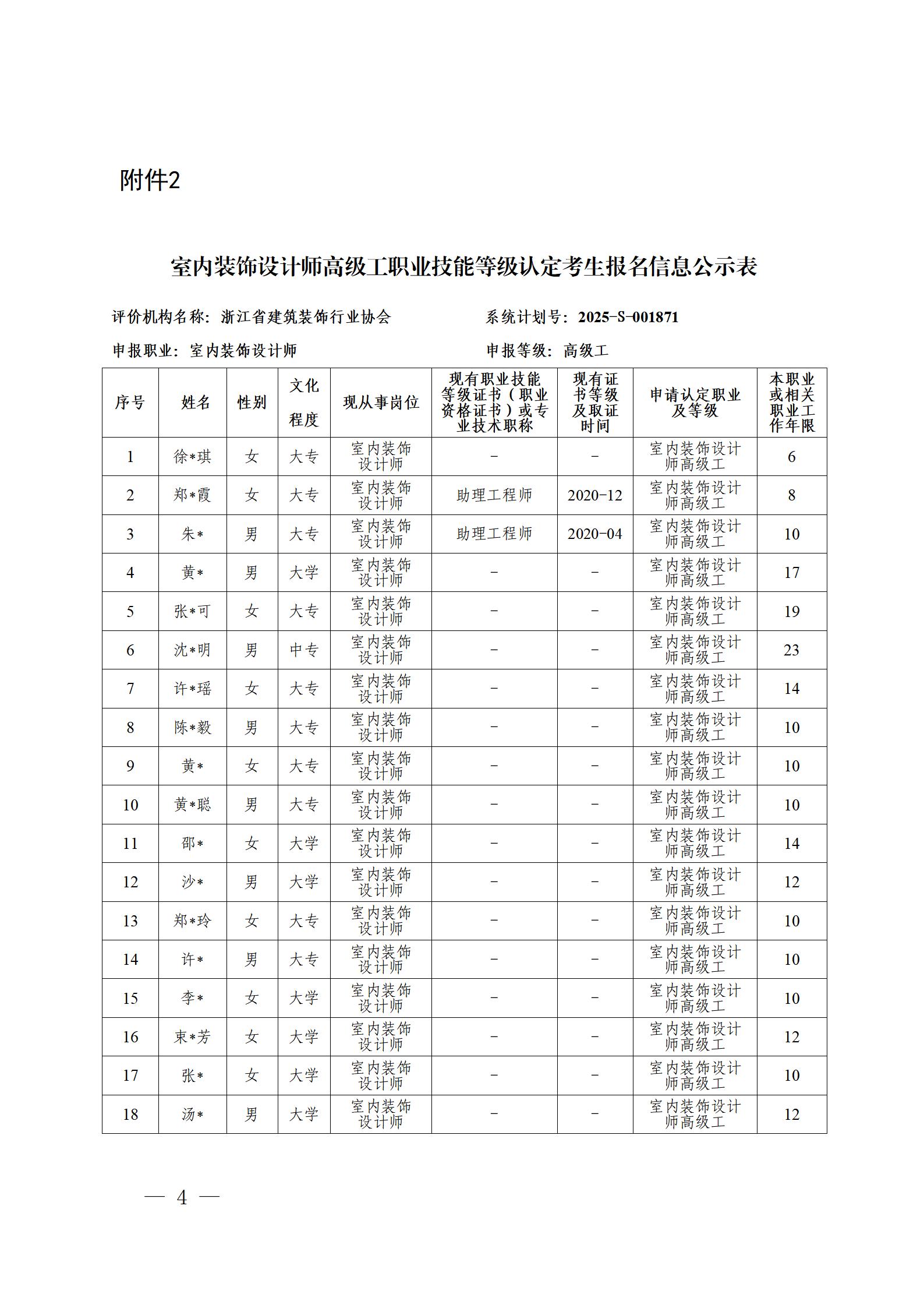 浙江省建筑裝飾行業(yè)協(xié)會(huì)4月份室內(nèi)裝飾設(shè)計(jì)師職業(yè)技能等級(jí)認(rèn)定考生報(bào)名信息公示