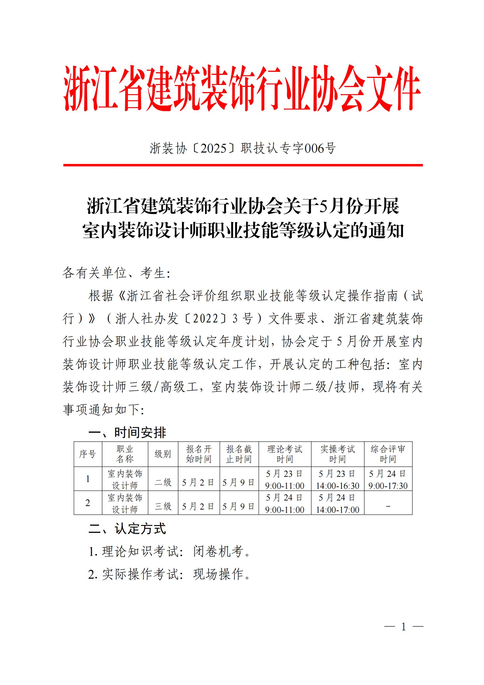浙江省建筑裝飾行業(yè)協(xié)會關(guān)于5月份開展室內(nèi)裝飾設(shè)計(jì)師職業(yè)技能等級認(rèn)定的通知