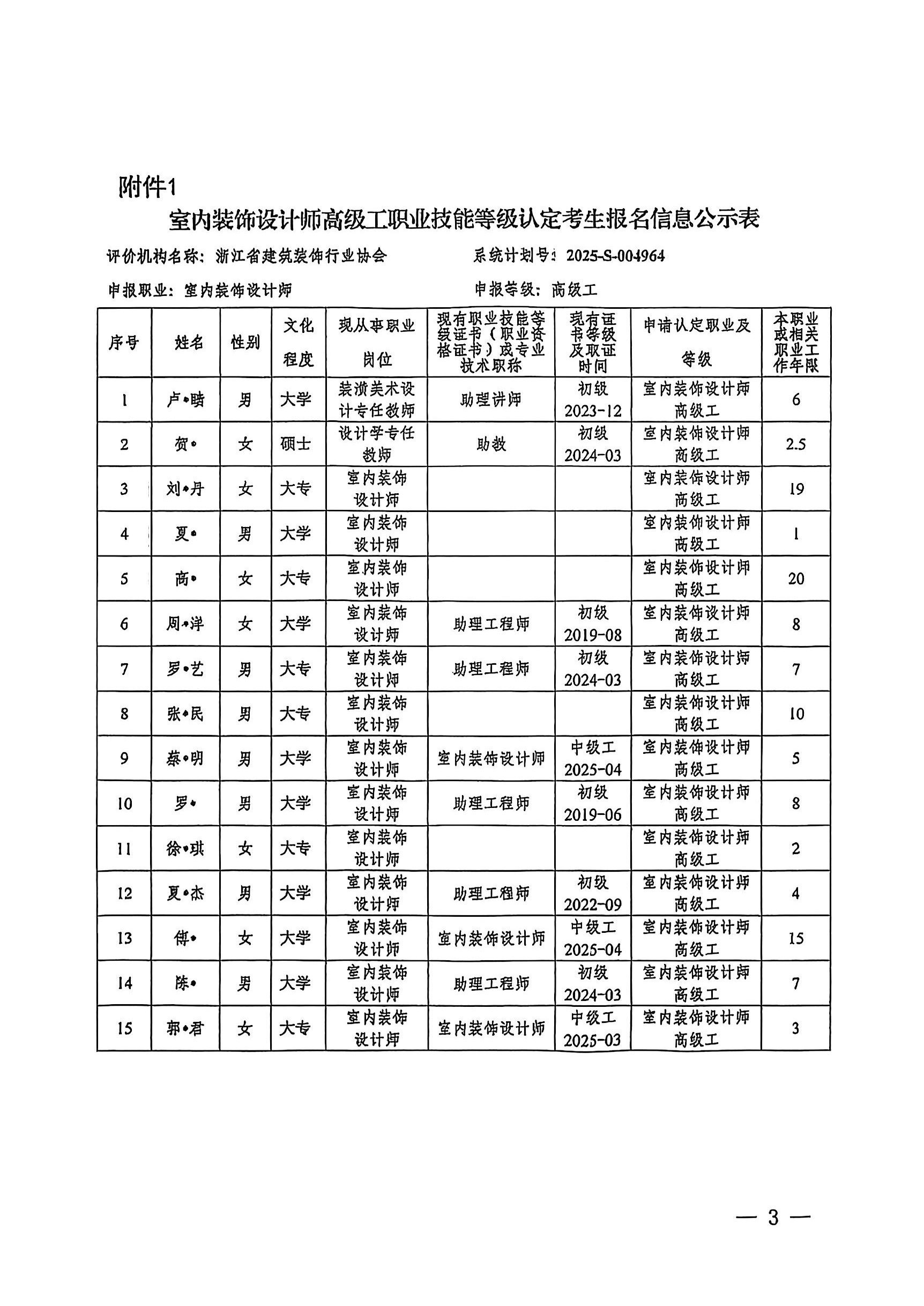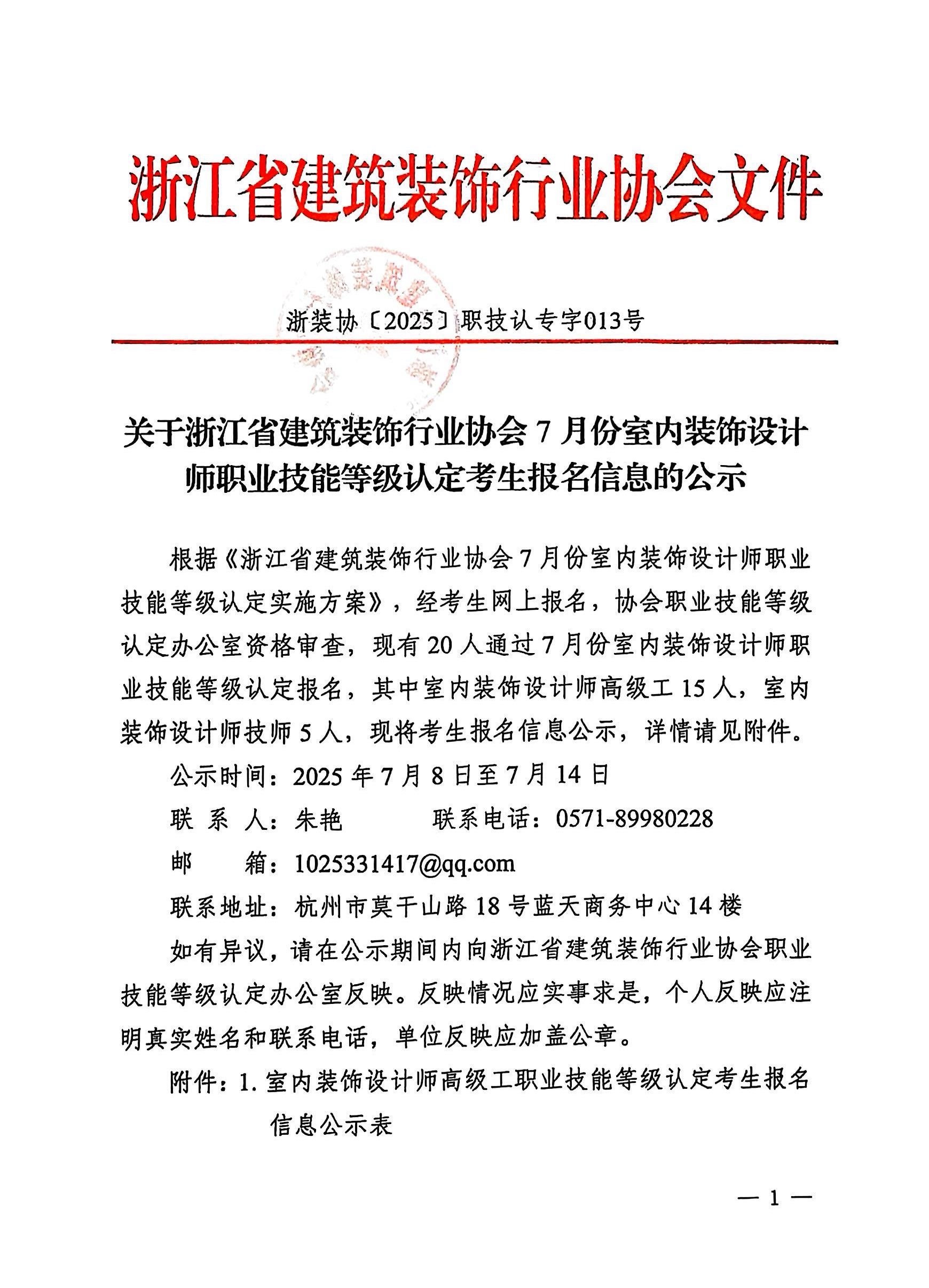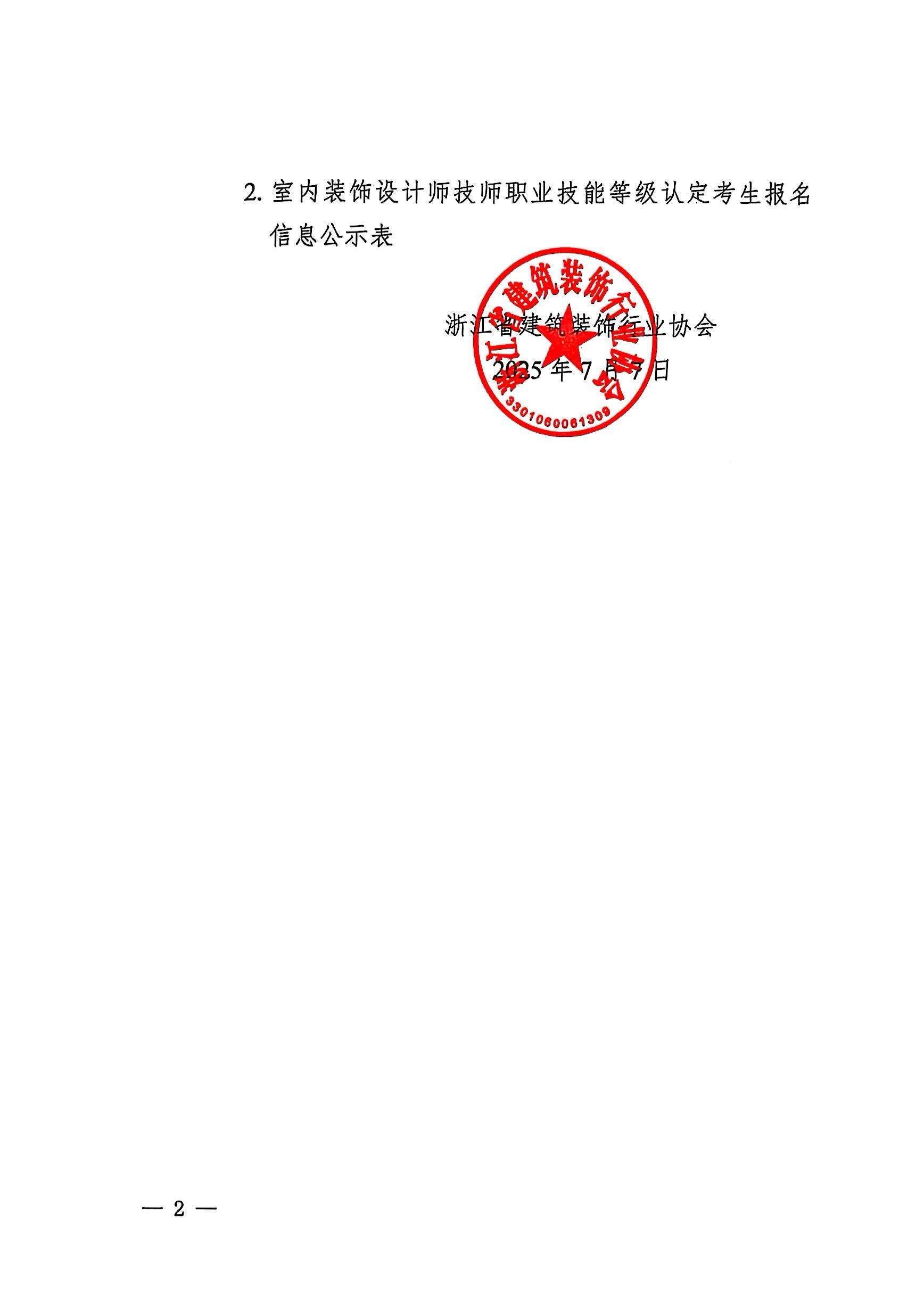 關(guān)于浙江省建筑裝飾行業(yè)協(xié)會7月份室內(nèi)裝飾設(shè)計師職業(yè)技能等級認定考生報名信息的公示