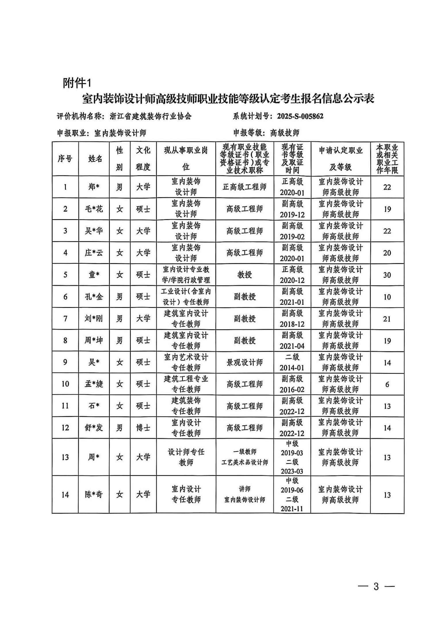 關(guān)于浙江省建筑裝飾行業(yè)協(xié)會(huì)8月份職業(yè)技能等級(jí)認(rèn)定考生報(bào)名信息的公示