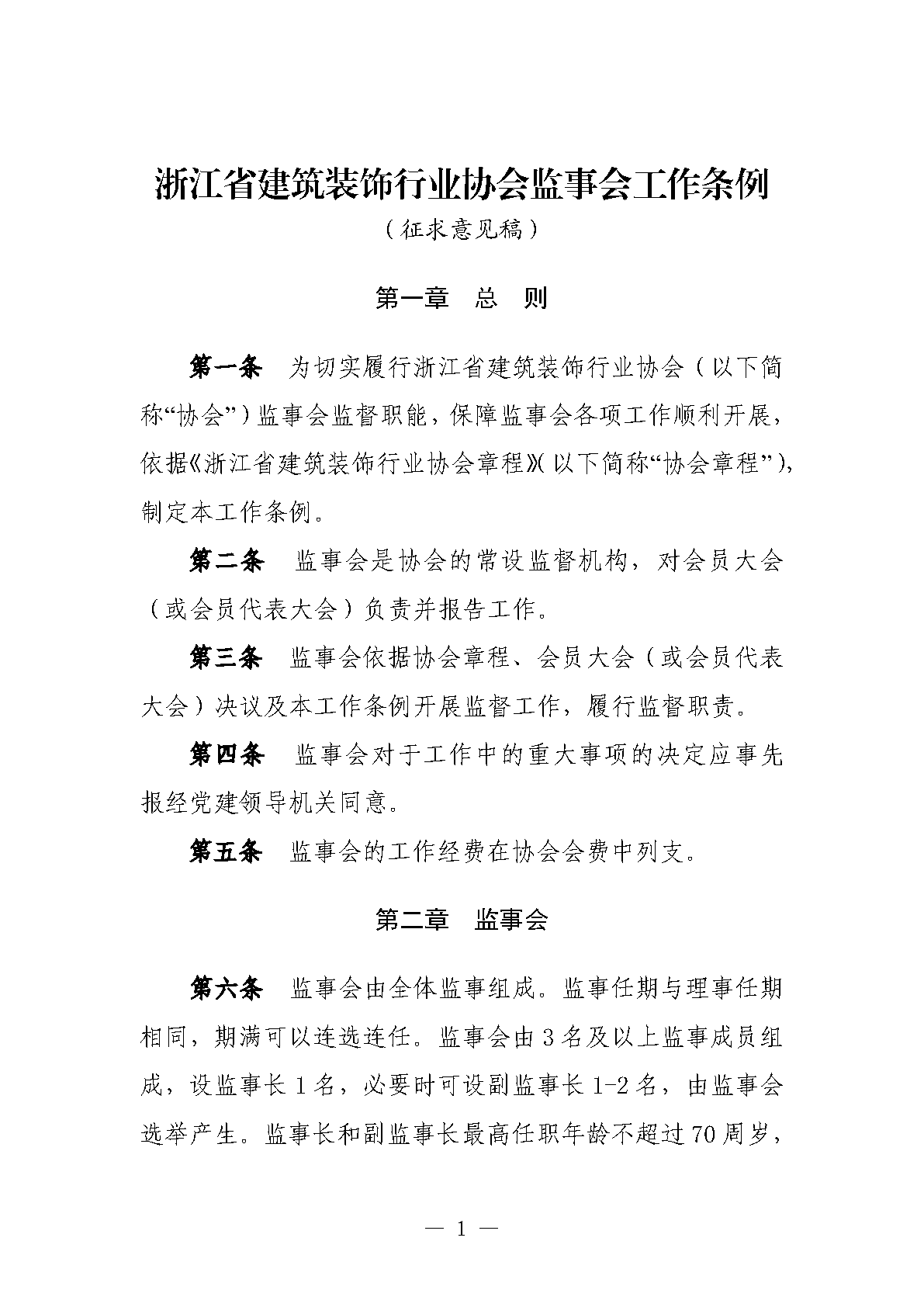 關(guān)于《浙江省建筑裝飾行業(yè)協(xié)會(huì)監(jiān)事會(huì)工作條例》的征求意見